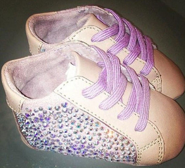 Designerul Ruthie Davis a creat la comanda pentru fetita cuplului Beyonce - Jay-Z o pereche de tenisi de culoare roz, incrustati in lateral cu cristale Swarovski.