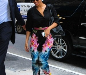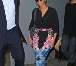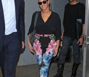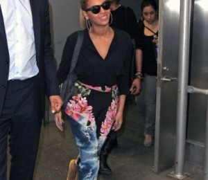 Cantareata in varsta de 30 de ani a purtat un jumpsuit cu imprimeu floral pe care a ales sa il accesorizeze indraznet cu o pereche de pantofi galbeni si o curea roz, care ii evidentia perfect talia. Beyonce a reusit sa isi recastige rapid silueta de dinainte de sarcina si la doar 2 luni de la nastere ne uimeste cu un abdomen perfect plat.