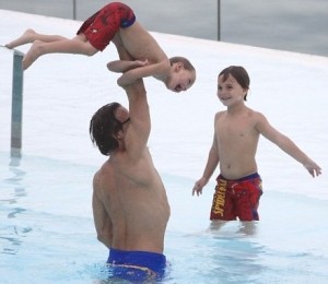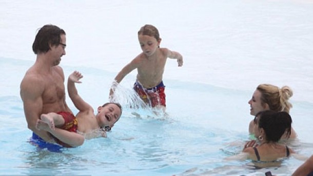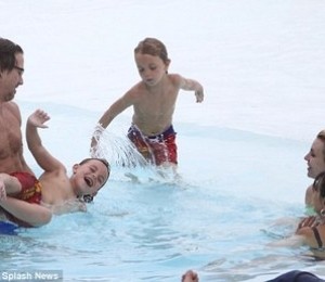 Alaturi de ei, a fost si mama vedetei, Lynne, care s-a simtit bine cu copii. Jason si-a intrat in rolul de tata al baietilor si a fost vazut jucandu-se cu acestia.
