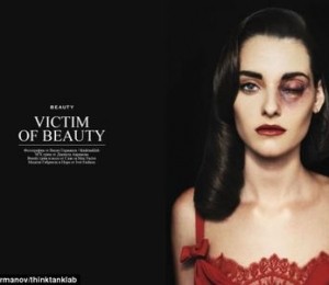 Intitulata "Victima Frumusetii", campania aduce in atentia publicului sase modele frumoase cu ochi invinetiti, piercing-uri smulse cu brutalitate si arsuri oribile, fotografiate de catre Vasil Germanov.