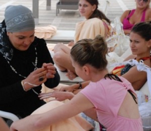 Ziua incepe cu o sedinta de hammam, echivalentul unei sedinte de spa. Urmeaza apoi o baie de aburi si tratamentul de exfoliere. Abia apoi fetele sunt pregatite pentru cel mai frumos moment al zilei: pictarea cu henna, ritual traditional de infrumusetare tipic tunisian. Desenul astfel realizat va ramane pe piele vreme de aproximativ trei saptamani.