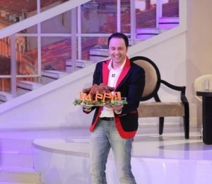 Surprizele nu s-au oprit aici. Pavel Bartos, pe care Maruta l-a pacalit de ziua sa cu un urias ”plocon” menit sa asigure intrarea in concursul “Romanii au talent” a doua domnisoare dornice de afirmare, a venit la “Happy Hour” pentru a arata ce s-a ales de respectivul cadou: o omleta uriasa din 30 de oua si un curcan gatit.