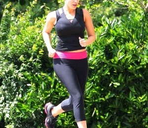 Frumoasa bruneta in varsta de 32 ani a fost suprinsa in timpul unei sedinte de alergat cu un look complet natural.