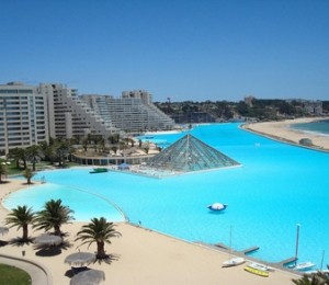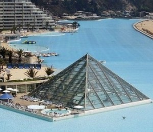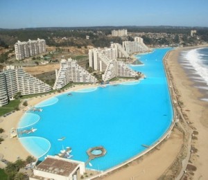 Cea mai mare piscina din lume apartine hotelului San Alfonso del Mar din Algarrobo, Chile. Aceasta a intrat in anul 2006 in Cartea Recordurilor, avand o lungime de peste 1.000 de metri. Capacitatea acestei piscine este de 250 de milioane de litri de apa.