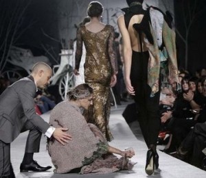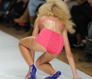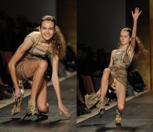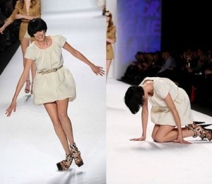 Pare foarte simplu sa defilezi pe un podium insa nu este chiar asa. Lucrurile se complica destul de tare atunci cand trebuie sa porti o pereche de pantofi cu un toc de 15 cm, eventual cu 2 numere mai mici decat masura ta, precum si o rochie tip sirena care nu-ti permite sa iti misti picioarele corespunzator.