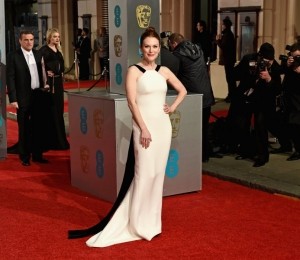 Kate Winslet, care a plecat acasă cu premiul pentru cea mai bună actriţă în rol secundar, a avut una dintre cele mai apreciate apariţii de pe covorul roşu. Actriţa a ales pentru Premiile BAFTA o rochie neagră semnată Antonio Berardi, pe care a accesorizat-o cu o geantă roşie, dar şi cu un ruj în aceeaşi nuanţă puternică.