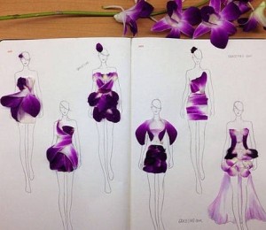 Un designer a creat o serie de schite deosebite, cu modele de rochii create din petale de flori.