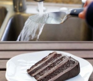Vrei sa tai felia perfecta de tort? Tine lama cutitului sub jetul de apa fierbinte pret de cateva secunde si vei observa ca felia de tort de vfa taia perfect.