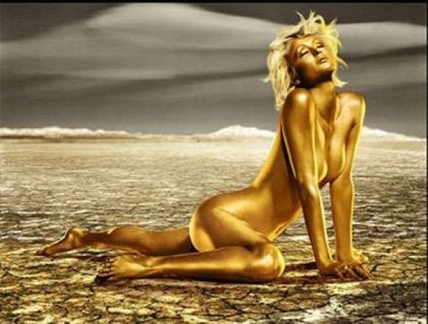 Mai mult, vanatorii de mituri s-au folosit ca argument si de anumite modele care au fost imbracate in costume aurii de latex pentru diferite sedinte foto.