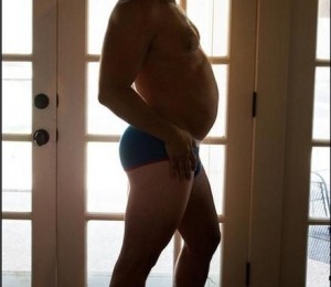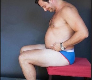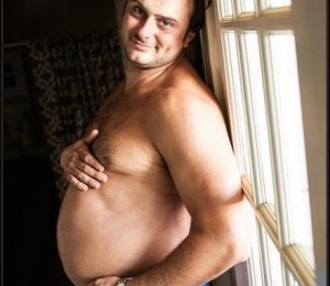 Ei bine, sotia acestui barbat nu este de acord cu aceasta idee si cu acest trend. Pe internet circula o multime de imagini cu burticile femeilor gravide, fie burtici pictate, fie burtici etalate cu mandrie. Asa ca sotul acestei femei care face exceptie de la regula s-a gandit sa isi faca el cateva fotografii in locul ei. Sursa.
