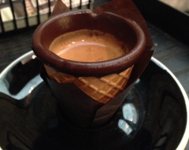 Cafeneaua ofera o noua versiune a shot-ului de espresso. Poti sa iti cumperi alimentarea cu fericire in mici conuri de inghetata care au fost invelite in ciocolata.