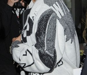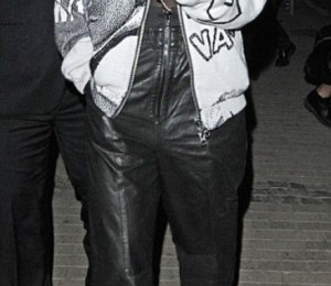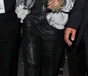 Rita Ora a ales sa poarte o pereche de pantaloni negri din piele combinati cu un corset care i-a pus in evidenta decolteul si o jacheta de baseball.
