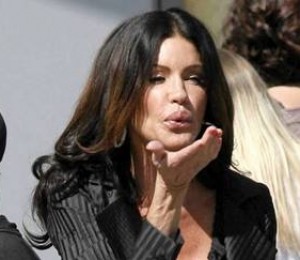 Mama a doi copii, Janice Dickinson a ales sa poarte o fusta neagra, scurta, in combinatie cu un sacou cu decolteu generos, tinuta nu tocmai inspirata.