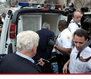 Actorul impreuna cu tatal lui si mai multi membri din Camera Reprezentantilor manifestau in fata ambasadei si au incalcat intentionat banda de protectie pe care politia o instalase. Acestia au fost incatusati si luati de politie.