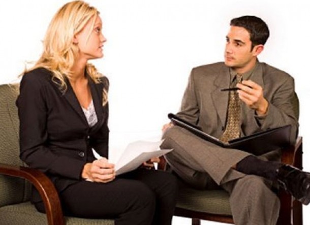 Capul inclinat intr-o parte si mainile inclestate (foto 5) - Inclinarea capului semnifica interesul pentru cele spuse de interlocutor, insa incrucisarea mainilor in zona pelvisului denota nervozitate.
