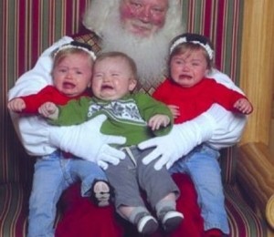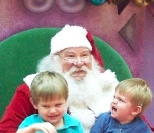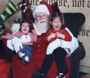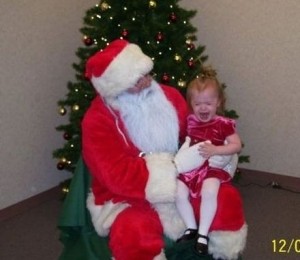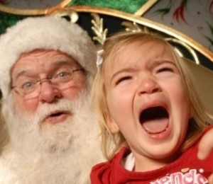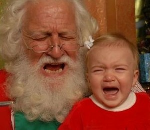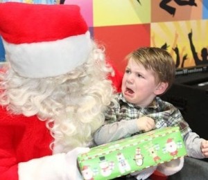 Desi bucuria de a primi un cadou de la Mos Craciun este enorma, site-ul TMZ a publicat cateva fotografii cu copii care plang cand sunt tinuti in brate de Mosul sau il urasc pentru darurile primite.