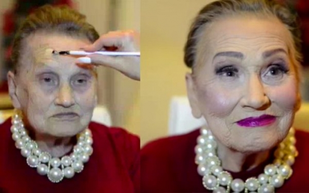 Tea a hotărât să o machieze pe bunica sa, Livia Mulac, în vârstă de 80 de ani, pentru a dovedi cât de mare poate fi transformarea atunci când te laşi pe mâinile unui make-up artist.