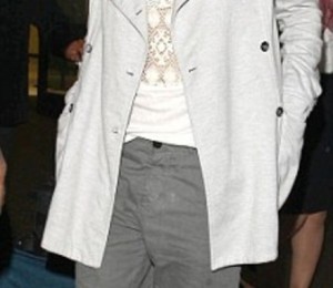 Actrita in varsta de 30 de ani era imbracata intr-o tinuta casual, compusa dintr-un top din dantela, o pereche de pantaloni gri si un trench de aceeasi culoare si desi era foarte obosita a reusit totusi sa schiteze un zambet de dragul fotografilor.