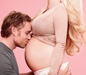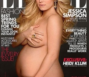 Jessica Simpson este insarcinata in luna a 8-a si isi arata burtica de gravida pentru editia din aprilie a revistei Elle. Cantareata apare in doua poze complet goala, acoperindu-se doar cu mainile. Intr-o alta poza, ii este alaturi si iubitul ei, Eric. Acesta sta in fata cantaretei si ii saruta tandru burtica.