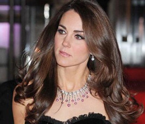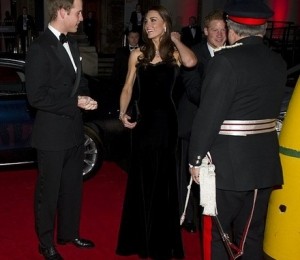 Ducesa de Cambridge a purtat o rochie lunga, neagra, din velur, semnata Alexander McQueen. Rochia cu umeri goi i-a scos in evidenta bratele bine lucrate si forma fizica demna de invidiat. Kate a completat tinuta cu un colier din rubine si diamante si o pereche de pantofi din satin.