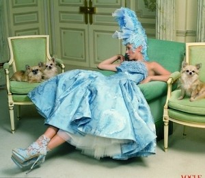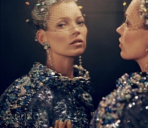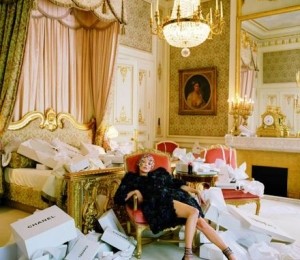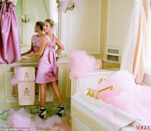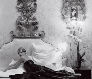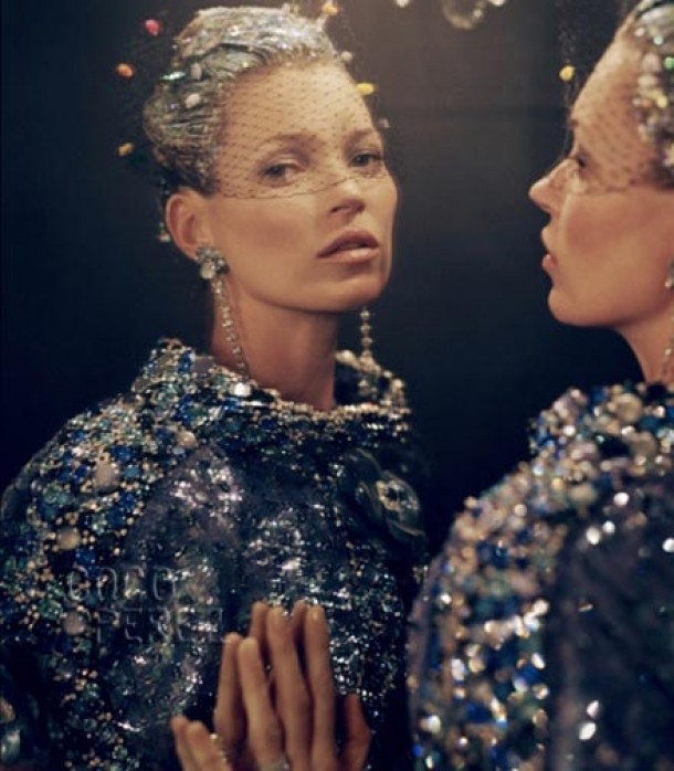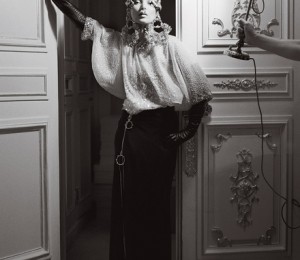 Celebrul manechin a imbracat o serie de rochii couture si a pozat in diferite ipostaze in Hotelul Ritz din Paris, in camera CoCo Chanel pentru o sedinta foto Vogue.