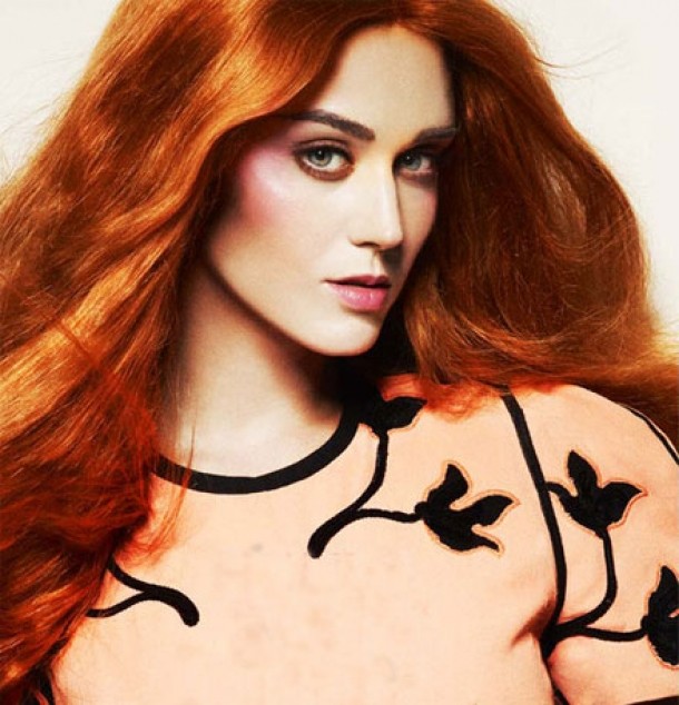 Cu parul vopsit intr-o nuanta fierbinte de roscat aprins, cu tonuri de cupru, ce se potriveste de minune personalitatii ei puternice si pielea ca de portelan, efect realizat si cu ajutorul unui blush ce se asorta cu rujul intr-o nuanta naturala, discreta, Katy Perry este de nerecunoscut.