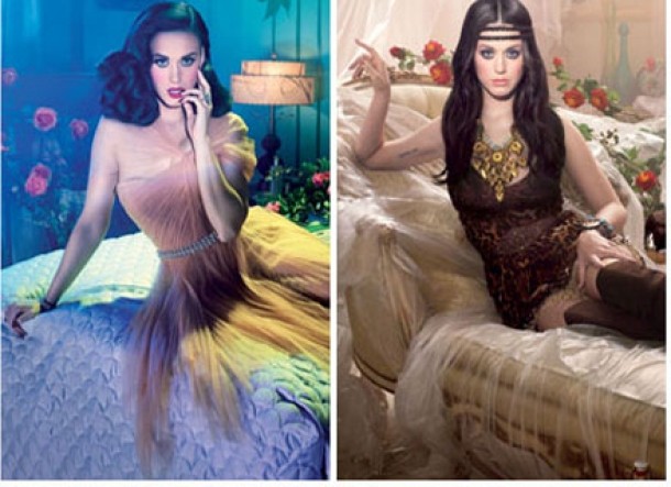 Fotografiile ne-o arata pe Katy Perry in ipostaze precum Alba-ca-Zapada sau Regina malefica. De asemenea, vedeta adopta un look glamour – vintage seducator, purtand o rochie cu franjuri si pene si o coafura bob cu bucle.