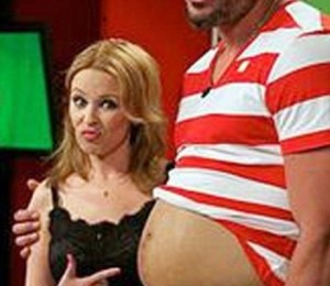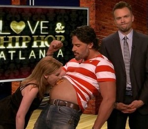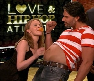 Pentru a amuza publicul, invitata fiind la emisiunea de divertisment intitulata "The Soup", Kylie Minogue nu a ezitat sa guste chipsuri direct de pe burta proeminenta a actorului Joe Manganiello. Inedita a fost discrepanta dintre abdomenul bine lucrat dupa care publicul de sex feminin suspina in timp ce urmareste cu sufletul la gura cele mai noi episoade din seiralul True Blood si burta de bere afisata de actor in direct, in cadrul emisiunii.