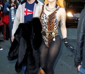 Cantareata in varsta de 26 de ani si-a surprins fanii care o asteptau nerabdatori la iesirea din Northcote Social Club, unde avusese loc petrecerea, cu o tinuta inedita, in stilul care a consacrat-o pe Lady Gaga.