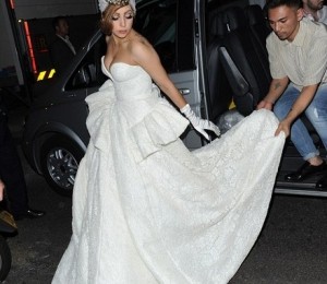 Trena i-a dat batai de cap artistei, intrucat a avut nevoie de ajutor pentru a cobori din masina. Cu toate acestea, Lady Gaga a pozat mandra in tinuta alba din cap pana in picioare.