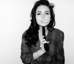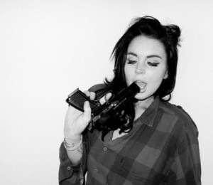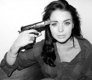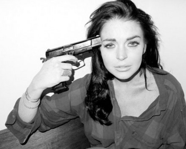 Cu o arma in mana, Lindsay Lohan pare sa cantareasca in ce pozitie ar avea sanse mai mari de reusita in caz ca decide sa apese pe tragaci.