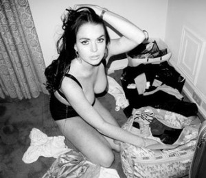 Impreuna cu o serie de fotografii in care apare doar in lenjerie intima, cu parul ravasit, imaginile cu "sinucigasa" Lindsay fac parte dintr-o sedinta foto realizata de Terry Richardson. Imaginile au fost postate recent pe internet, insa in urma controverselor starnite de primele fotografii, acestea au fost scoase de pe site-ul fotografului.
