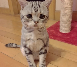 În ciuda etichetei de pisicuţă tristă, Luhu trăieşte în Beijing şi duce un trai fericit.