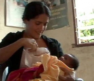 Actriţa a rupt toate barierele când a alăptat un nou-născut din Africa, în aceeaşi perioadă în care o alăpta şi pe fiica sa, Valentina. Clipul în care Salma Hayek îşi donează laptele pentru un bebeluş african e o dovadă de iubire pentru rasa umană.
