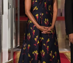 Michelle Obama a fost o apariţie răvăşitoare la această cină specială. Prima Doamnă s-a afisat cu buclele în vânt şi a purtat o rochie înflorată fără bretele, creaţia lui Jason Wu. Deşi Michelle a mai îmbrăcat rochii semnate de Wu, de data aceasta l-a ales în mod special deoarece designerul este foarte apreciat în Canada.