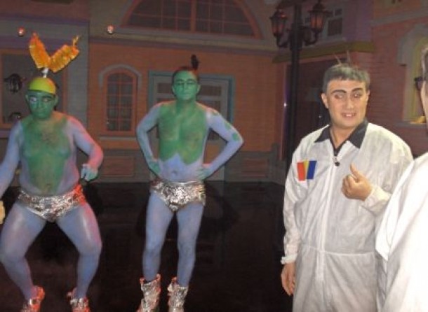 Imbracat intr-un costum de astronaut, cu jambiere in dungi albe si rosii, simpaticul Mihai Bendeac a pornit in expeditia sa catre Marte.