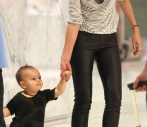 Modelul in varsta de 28 de ani nu poate sta nicio clipa departe de baietelul ei, asa ca micutul o insoteste pe mama lui oriunde. In imaginile surprinse de paparazzi, il putem vedea pe Flynn cum sta cuminte in bratele mamei lui, in timp ce aceasta parca defileaza pe catwalk pe tocuri pe care multe abia am merge si fara sa mai tinem un copil in brate.