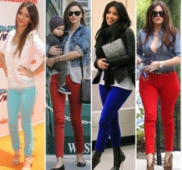 Ei bine, printre vedetele de la Hollywood, Kim Kardashian, Jessica Alba, Dakota Fanning, sunt doar cateva care poarta pantaloni in culori.