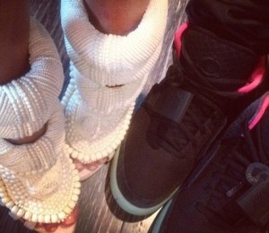 Pantofii, realizati din piele de vitel si brodati cu perle, costa in jur de 6.000 de dolari, dar asta nu ii face automat si potriviti pentru tinuta aleasa de Kim Kardashian.