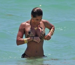 A reusit din nou sa atraga bliturile paparazzilor ziua trecuta, cand a iesit la plaja impreuna cu familia. Era imbracta intr-un costum de baie din doua piese, care evident era de dimensiuni minuscule si sutienul abia a facut fata bustului generos al lui Nicole, dandu-i batai de cap de fiecare data cand iesea din apa.