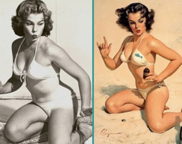 Celebrele "pin-up girls" nu sunt decat roade ale imaginatiei unor artisti priceputi, intrucat modelele nu erau nici pe departe atat de slabe si atat de sexy in realitate.