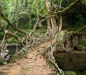 Acest trib foloseste strategia pe care in trecut o folosea tribul War-Khasis din Meghalaya, care aranja radacinile unei specii de Ficus caracterizata prin elasticitate si ale carei radacini cresteau la suprafata.