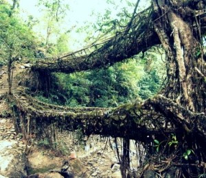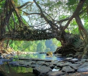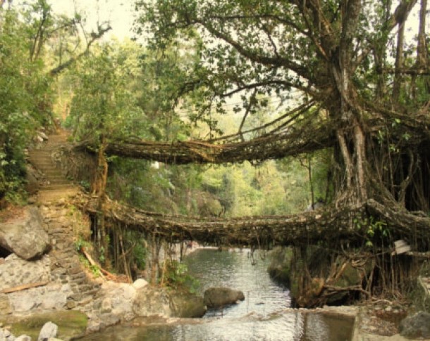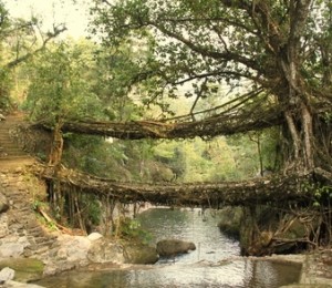 Tribul care populeaza oraselul Cherrapunji, oras situat pe locul doi in topul zonelor cu umiditatea cea mai crescuta, foloseste o metoda inedita pentru a-si contrui poduri peste raul care traverseaza orasul.