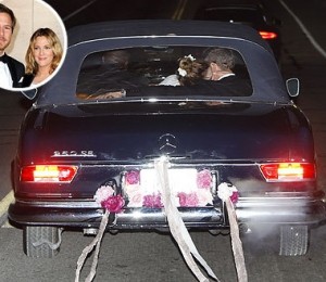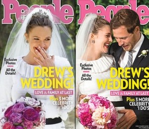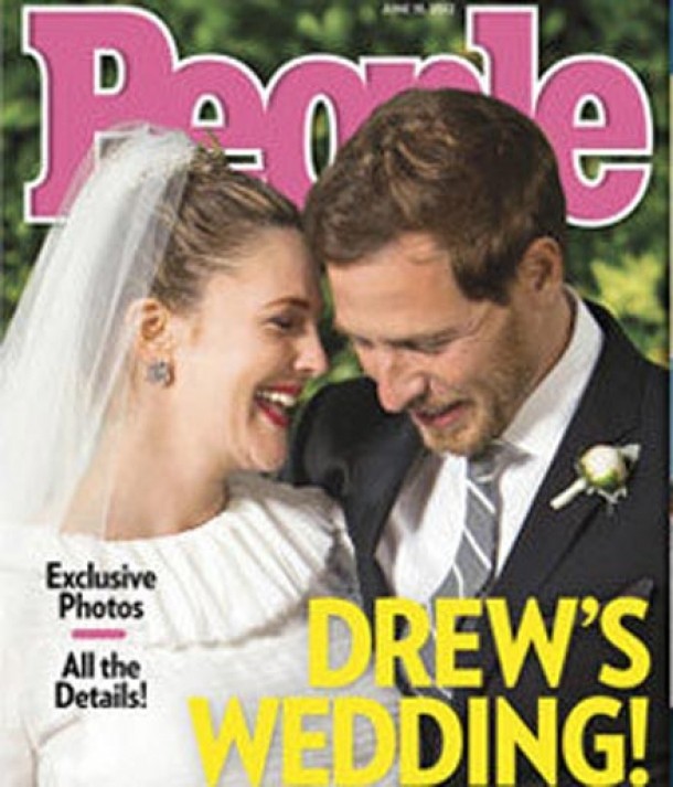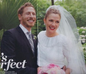 Proaspetii insuratei s-au furisat de la receptia de dupa nunta, tinuta la casa actritei din California, si s-au urcat intr-un Mercedes in stilul anilor '80, care era decorat cu flori, panglici roz. Cei doi au fost dusi la un hotel, iar o sursa a declarat pentru publicatia americana ca actorii pareau indragostiti, iar Drew parea fericita, imbracata inca in rochia de mireasa, semnata casa de moda Chanel.