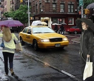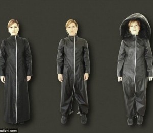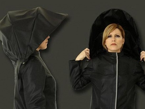Athanasia Leivaditou a creat o pelerina de ploaie a carei gluga este asemenea unei umbrele. Gluga este rigida pentru a rezista la vant si marginile sunt rotunjite pentru a te proteja de ploaie. Mai mult, este prevazuta si cu o membrana din plastic care se poate trage peste fata pentru a te proteja si de frig.