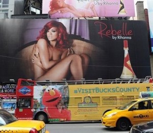 La scurt timp dupa aparitia panoului publicitar, Rihanna a fost surprinsa plimbandu-se prin New York despuiata. Aceasta purta un top transparent roz din dantela, ce ii acoperea doar partial sanii, o fusta roz cu pliuri pana la genunchi si o pereche de tenisi Converse negru cu alb, o geanta mica neagra si o pereche de ochelari negri.