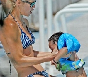 Doutzen Kroes se afla in prezent in Miami, in vacanta alaturi de sotul ei si fiul lor in varsta de doar 18 luni. Paparazzii au surprins fericita familie la piscina si imaginile ii vor face pe barbati sa fiarba de dorinta.