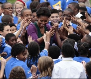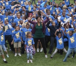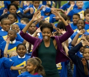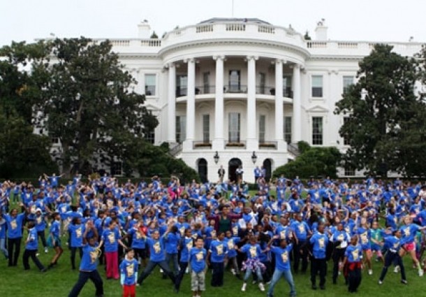 Prima Doamna a Statelor Unite s-a alaturat de data aceasta unui numar de 400 de copii pentru a dobora recordul mondial de cei mai multi oameni care sar timp de un minut.