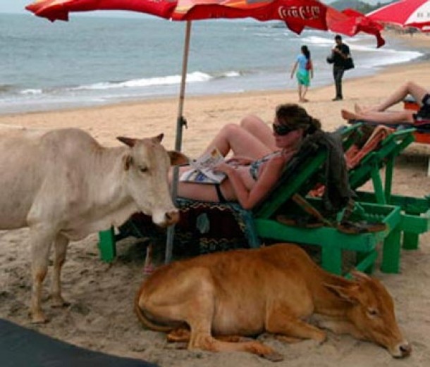 Bovine si plaja - doua cuvinte care de regula nu au ce cauta impreuna. De data asta plaja nu mai apartine doar animalelor, ci si turistilor. Printre umbrele si prosoape mai trec din cand in cand vaci, vitei si tauri. In pofida conditiilor sanitare nu tocmai adecvate, plaja este foarte populara in randul turistilor. Nimeni nu are motive sa se sperie, intrucat animalele nu vor decat sa se relaxeze putin.