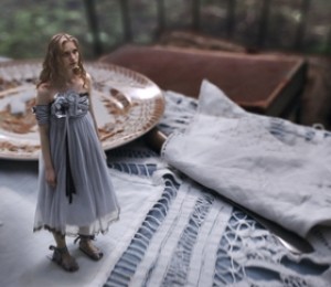 La inceputul filmului, tanara Alice arata perfect si are o tinuta corecta. Rochia ei se rezuma la versatilitate. Este potrivita pentru un dans (cadril) si pentru o rostogolire de toata frumusetea printr-o vizuina de iepure.